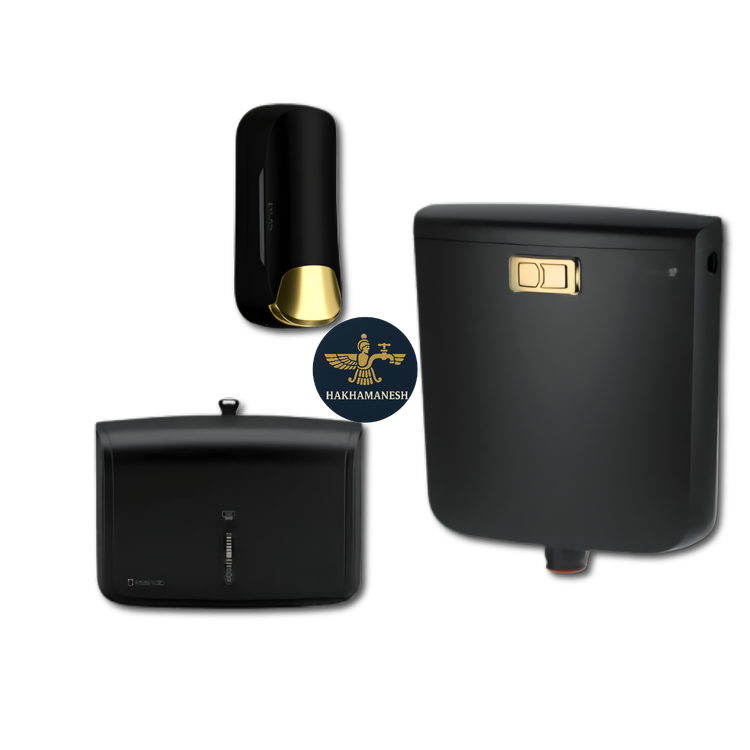 شامل فلاش تانک کاسپین مشکی/طلایی، جا دستمال ورونا ، ایما مشکی/طلایی