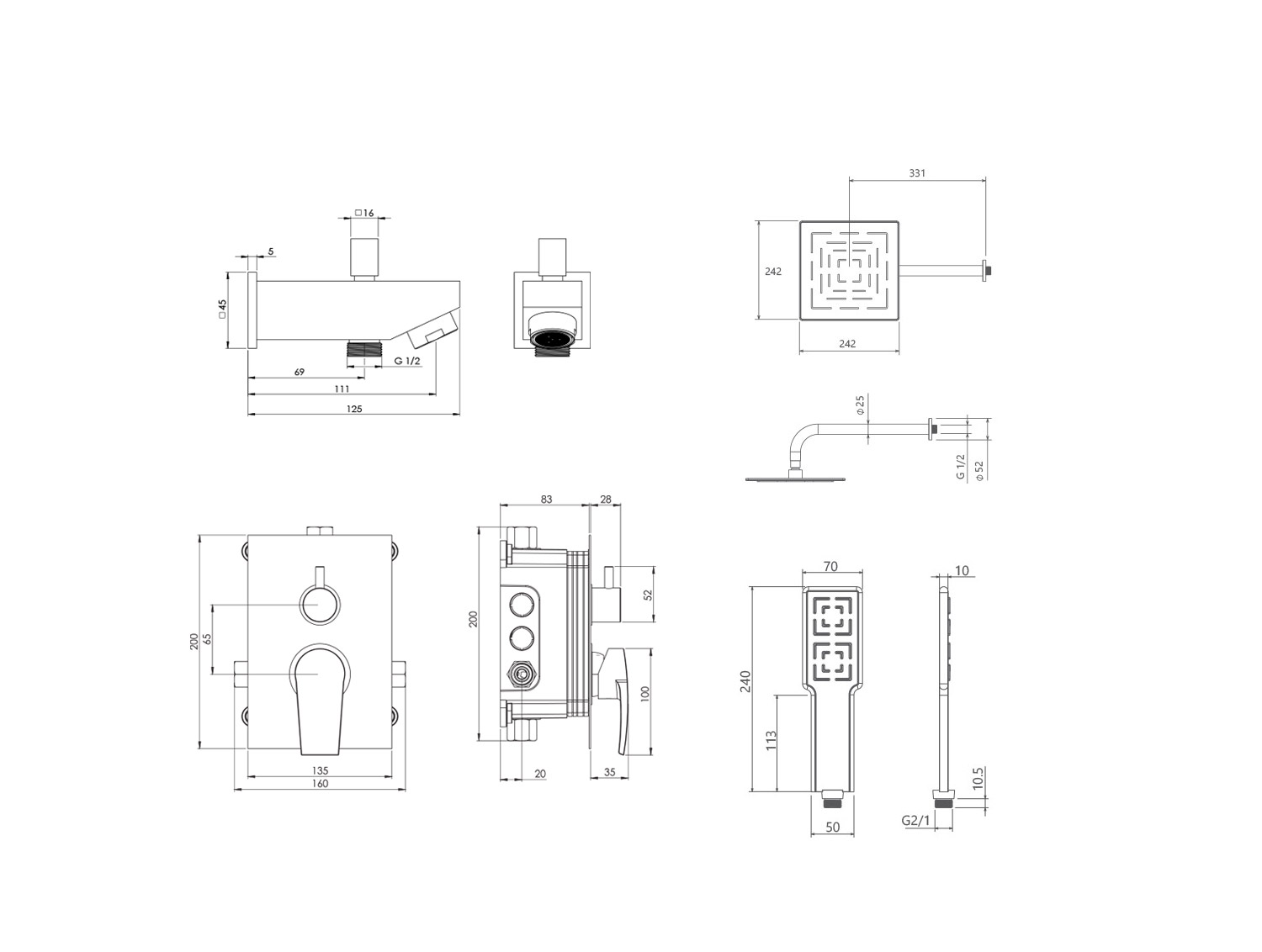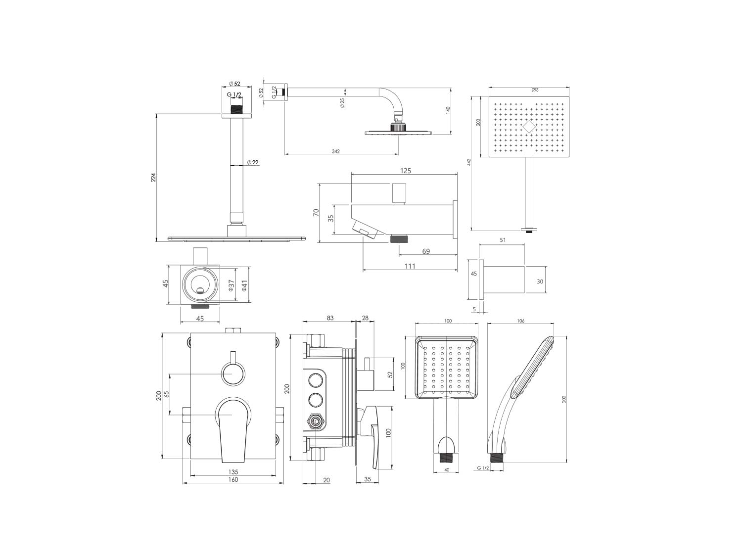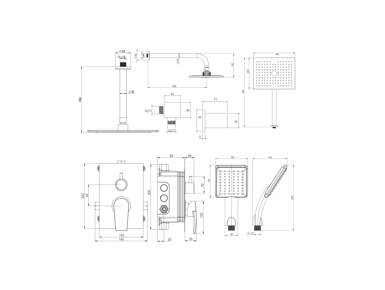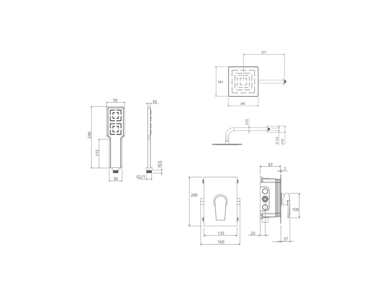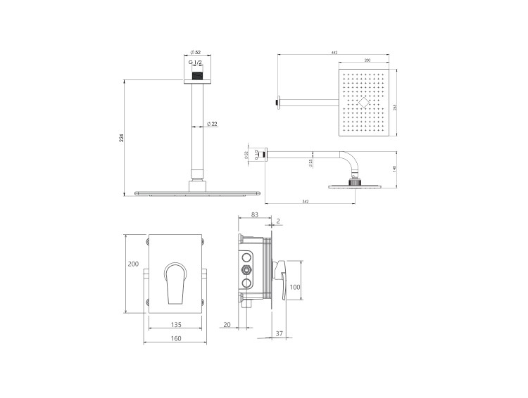 دوش هاي توکار قابل ارائه در دو مدل بازويي ديواري و يا سقفي